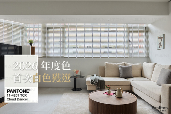 年度代表色:雲舞白 (Cloud Dancer) 比純白更溫潤,像雲朵般輕盈且具包容性,是 2026 年所有風格的基調。