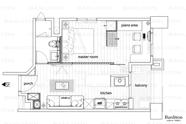 本次案例來自一通網路諮詢電話。屋主為外縣市住戶,在市區購置這間小宅,作為未來渡假與孩子就學的落腳處。由於在預售屋客變階段便提早介入規劃,成功節省了不少後續的裝修預算。