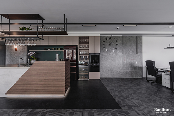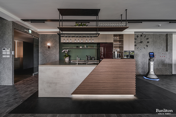 >>〔商空設計〕90 坪 AI 總部開箱,竟然有酒吧與居家的溫度 : 酒吧茶水區
