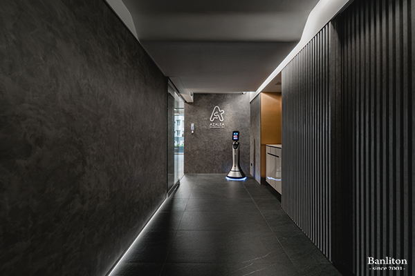 作為 AI 產業基地,安全性至關重要。入口處整合了人臉辨識與刷卡門禁系統,讓科技與設計完美融合。