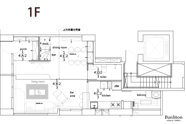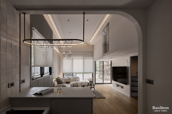 在有限的坪數與挑高條件下,格局的重新梳理至關重要。我們保留了挑高的開闊感,將公共領域(客餐廳、廚房)採開放式規劃,讓光線能自由流動;私領域則巧妙利用垂直空間,規劃出舒適的主臥與小孩房,實現機能與美感並存的生活哲學。